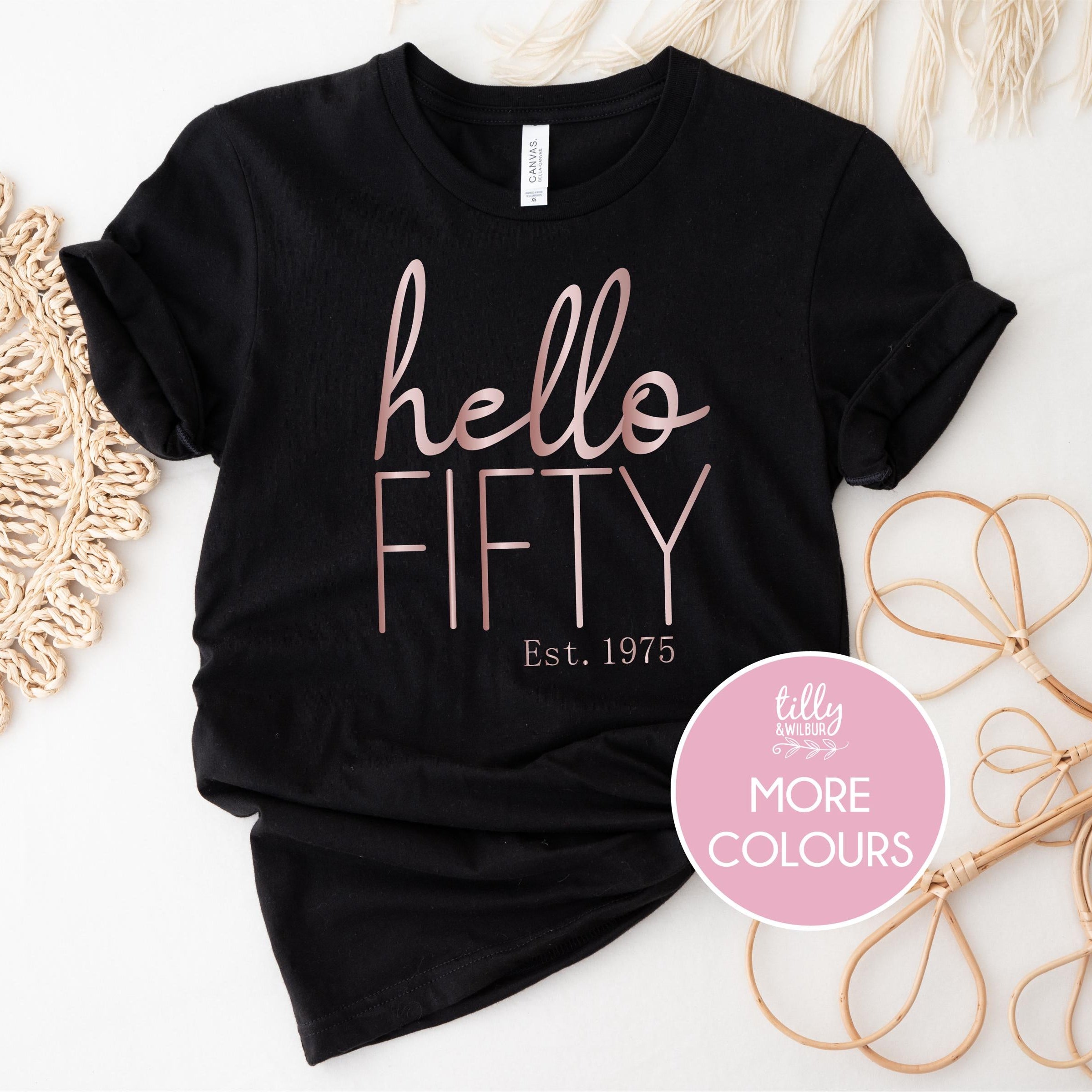 • Hello Fifty With Custom Est Year (MORE COLOURS & STYLES)