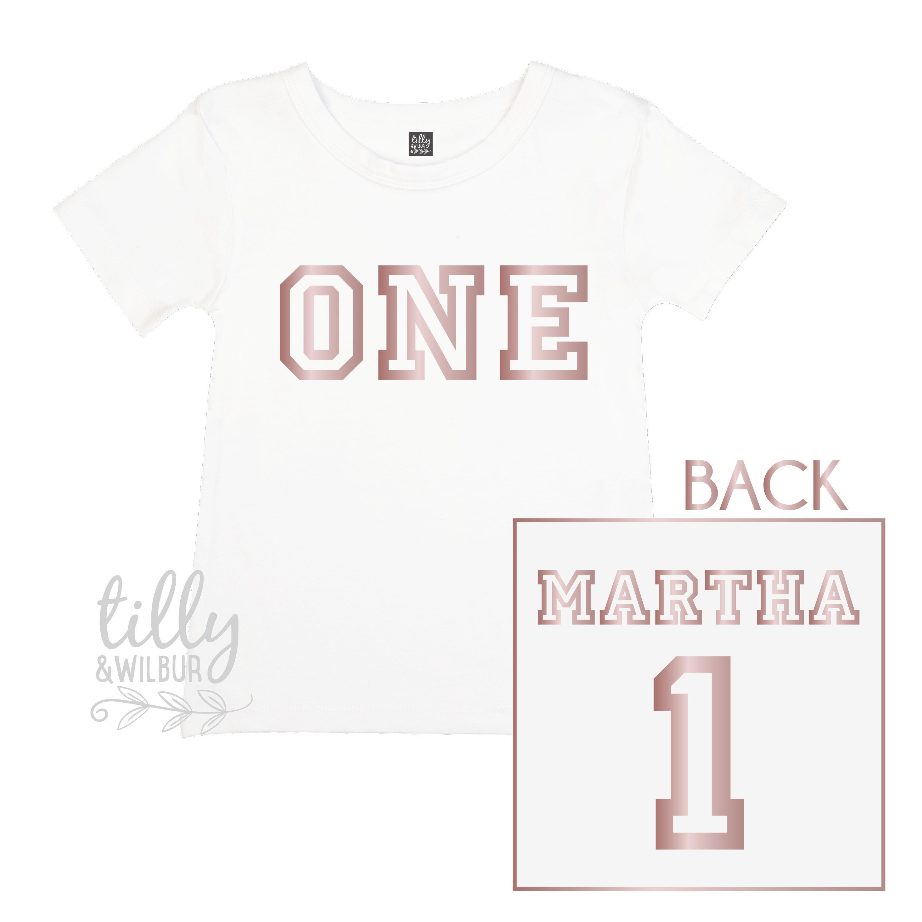 • One Personalised Girls 1st Birthday T-Shirt, 1st Birthday Gift, First Birthday Tee, Name And Number 1 On Back Of Shirt, Cake Smash Outfit