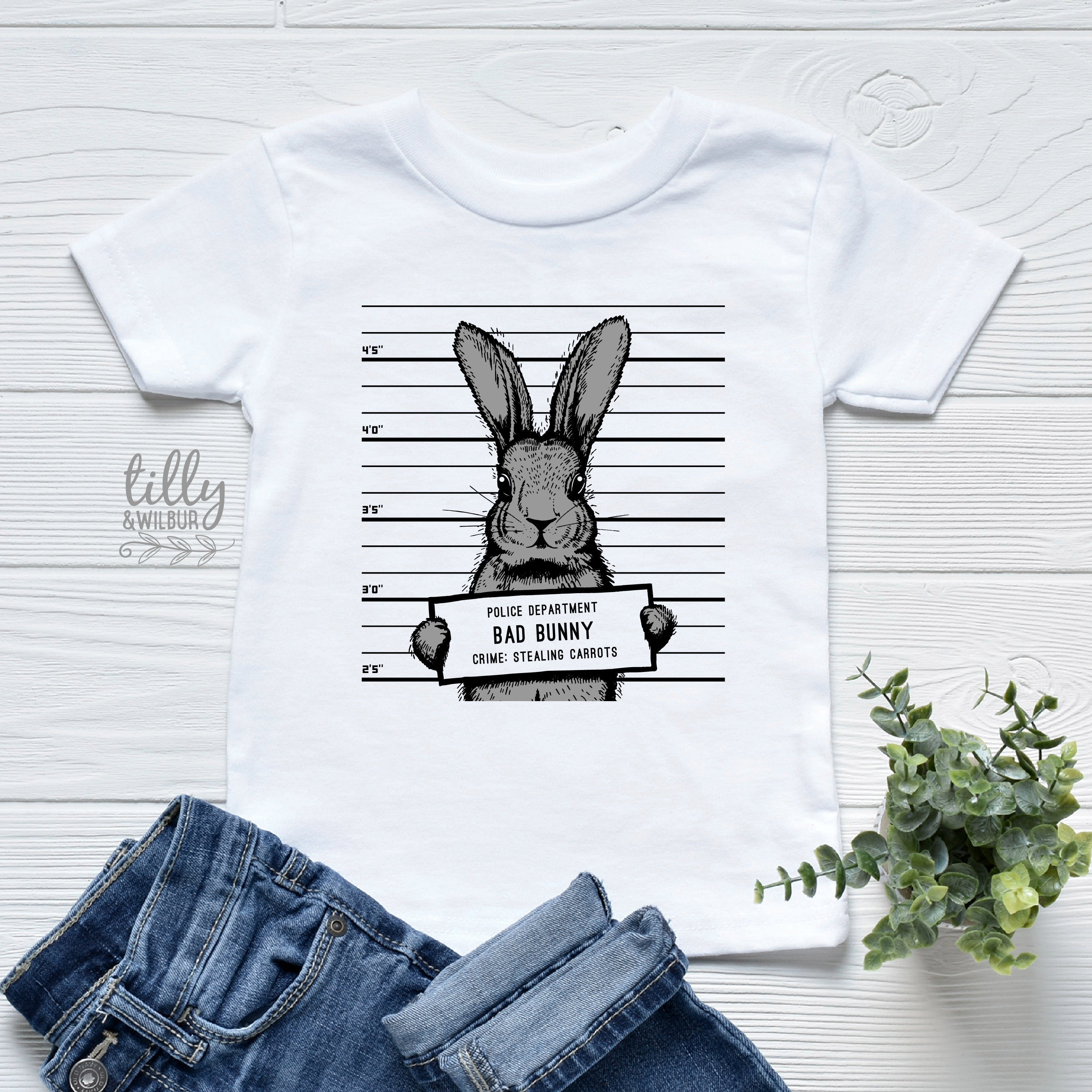 • Easter T-Shirt - Bad Bunny Mug Shot, Crime: Stealing Carrots!